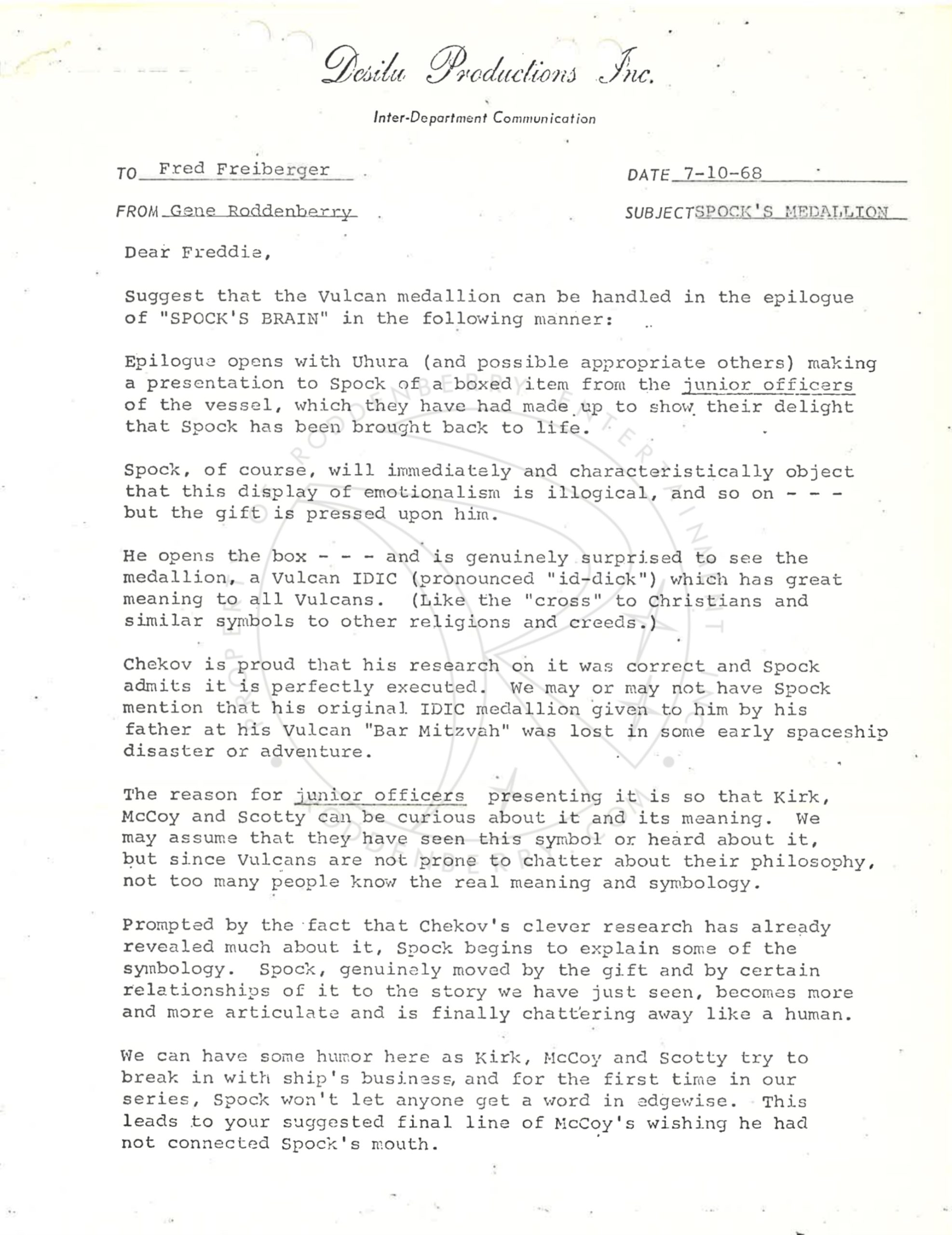 Mr. Spock will receive from home and begin to wear. Its design reflects the Vulcan belief that the greatest joy in all creation is in the infinite ways that infinitely diverse things can join together to create meaning and beauty.